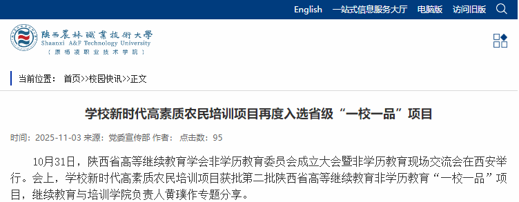这是学校继第一批“育训赋能乡村振兴培训”项目入选后,连续两届入选“一校一品”项目。高素质农民是农业强省的“重要生产力”,更是乡村振兴的“源头活水流”。下一步,学校将以高素质农民培育为引擎,用育训“最先一公里”,赋能乡村振兴“最后一公里”需求,持续做好乡村振兴技术技能人才培育工作,育训衔接培育一批批知农爱农、懂农事农、强农报国”的基层人才,确保“下得去、用得上、留得住、有效能”,进一步激活农业强省建设与乡村振兴新动能。