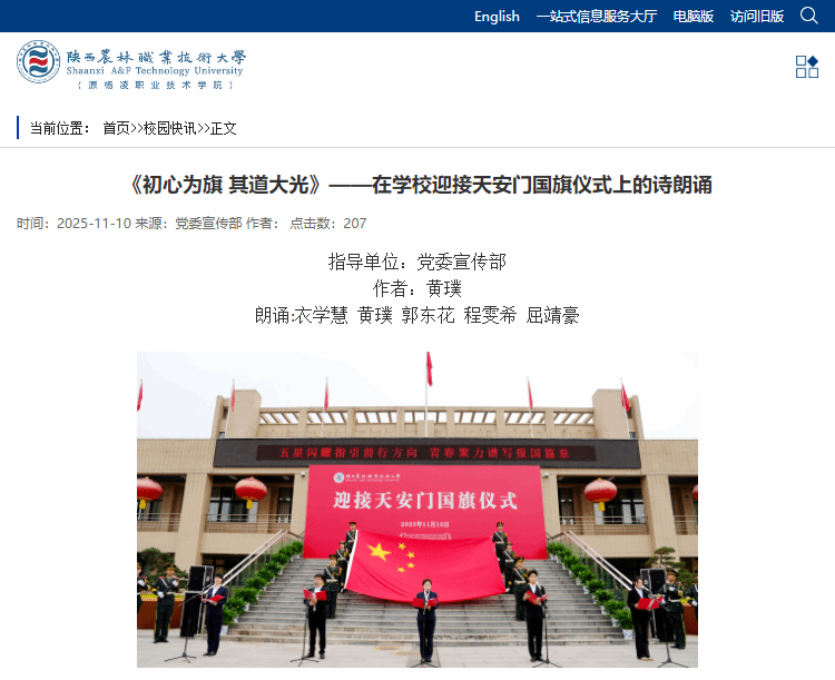【媒体聚焦 陕农大发布】《初心为旗 其道大光》——在学校迎接天安门国旗仪式上的诗朗诵