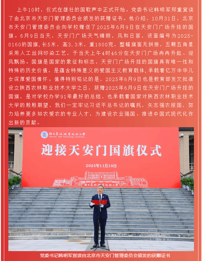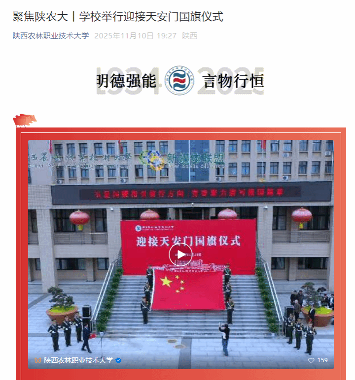 【媒体聚焦 陕农大发布】聚焦陕农大丨学校举行迎接天安门国旗仪式