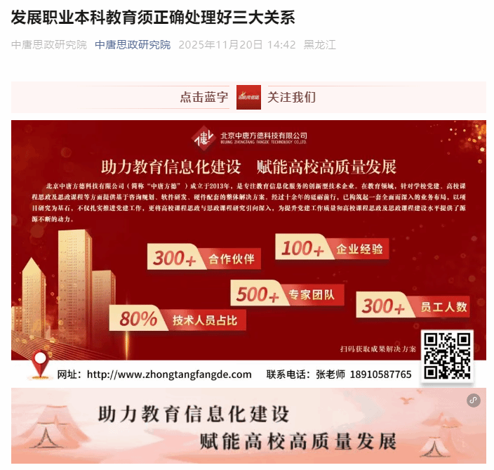 上一条:【媒体聚焦 中国成协高校继续教育专委会发布】2025年度盛会大连启幕!品牌铸魂 数智赋能,继续教育共启十五五高质量新征程 下一条:【媒体聚焦 思政资源库发布】”新双高“背景下职业本科院校一流核心课程建设路径与探索