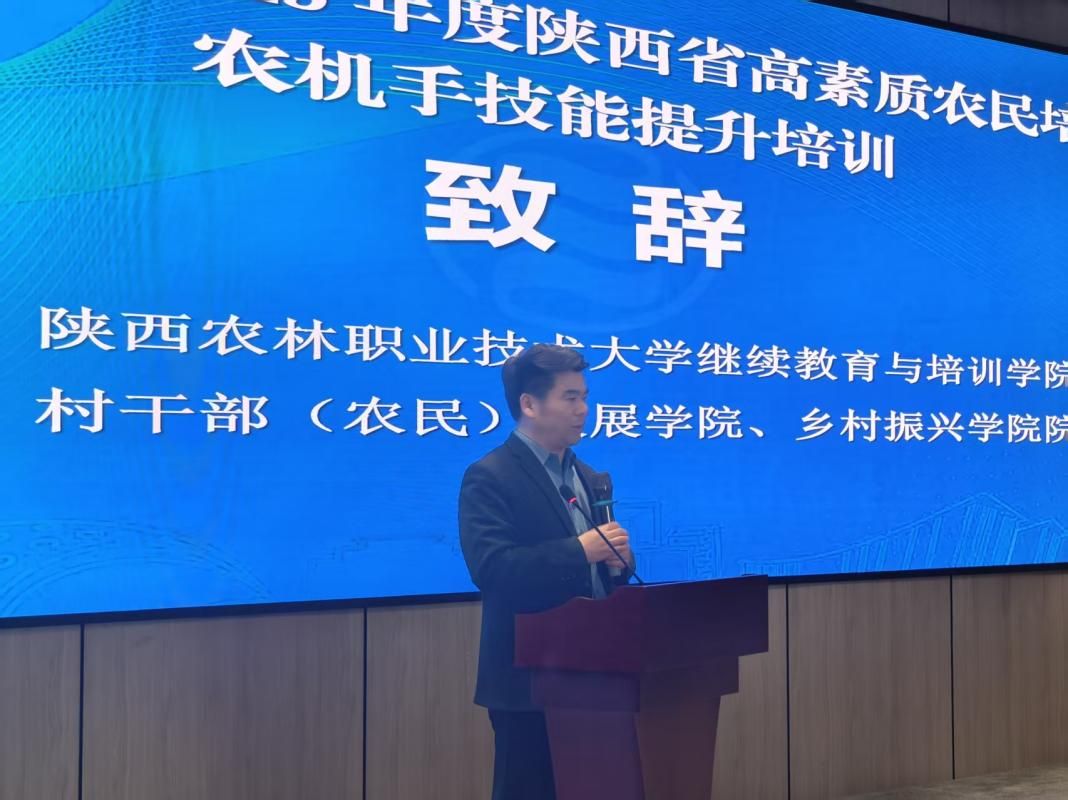 陕西农林职业技术大学继续教育与培训学院院长在开班仪式上表示,农机手是打通农业生产“最后一公里”的关键力量,本次培训依托学校农科教资源优势,邀请行业专家、技术能手和企业技术代表全程授课,配备主流农用机械实训设备,确保学员“学得会、用得上、能受益”。“从‘靠经验’到‘凭科技’,从‘会种地’到‘种好地’,希望通过系统化培训,让每位学员都能成为既懂传统农机、又通智能技术的复合型人才。”