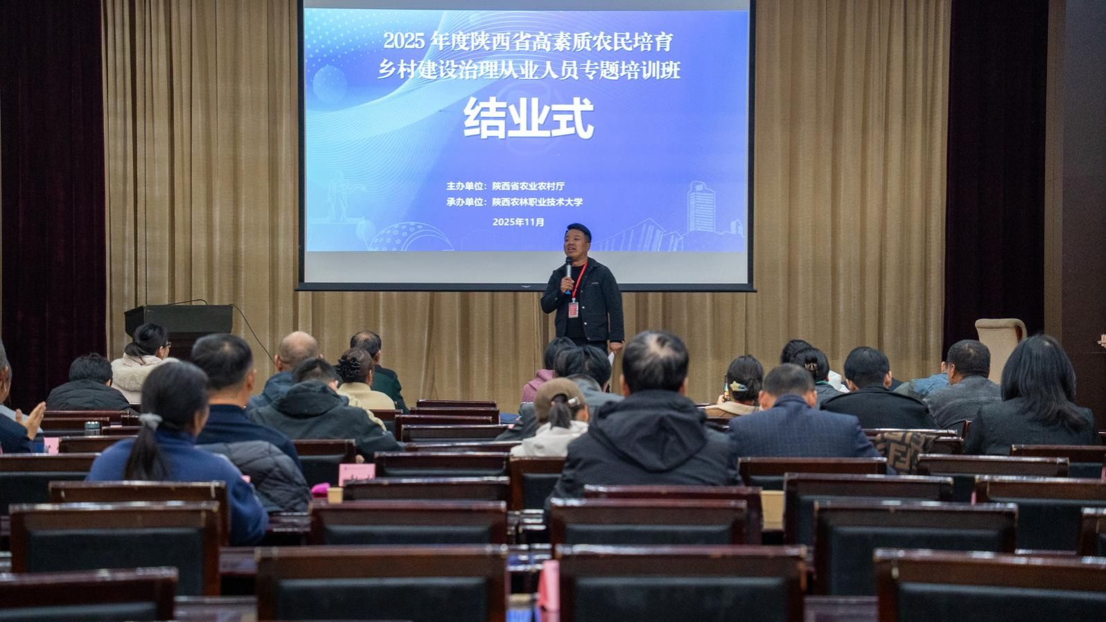 近日,由陕西农林职业技术大学承办的2025年陕西省乡村治理与建设高素质农民培训班在临潼区举行。本次培训面向全省乡村建设骨干,着力提升其专业素养,服务乡村振兴。
