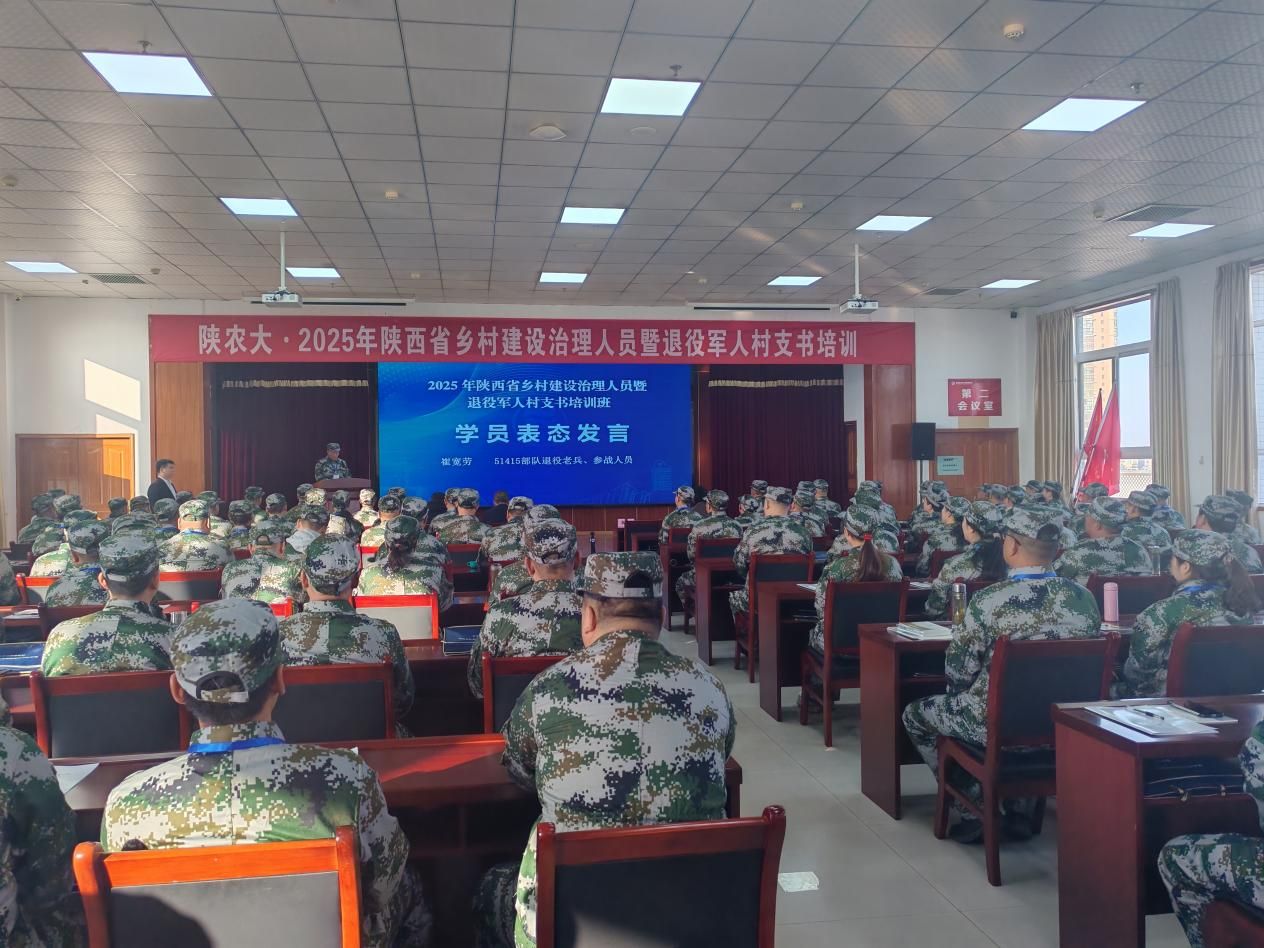 开班仪式上,全体人员肃立奏唱《中华人民共和国国歌》,庄重的氛围拉开培训序幕。陕西农林职业技术大学党委委员、副校长胡俊鹏为一班授旗,鲜红的旗帜承载着使命与担当,激发了全体学员的集体荣誉感。学员代表在表态发言中坚定表示,将以饱满热情投入学习,把军人本色融入乡村振兴实践。仪式尾声,学员面向《退役军人宣言》庄严宣誓,“昔日军营保家卫国,今朝乡村振兴建功”的誓言铿锵有力。