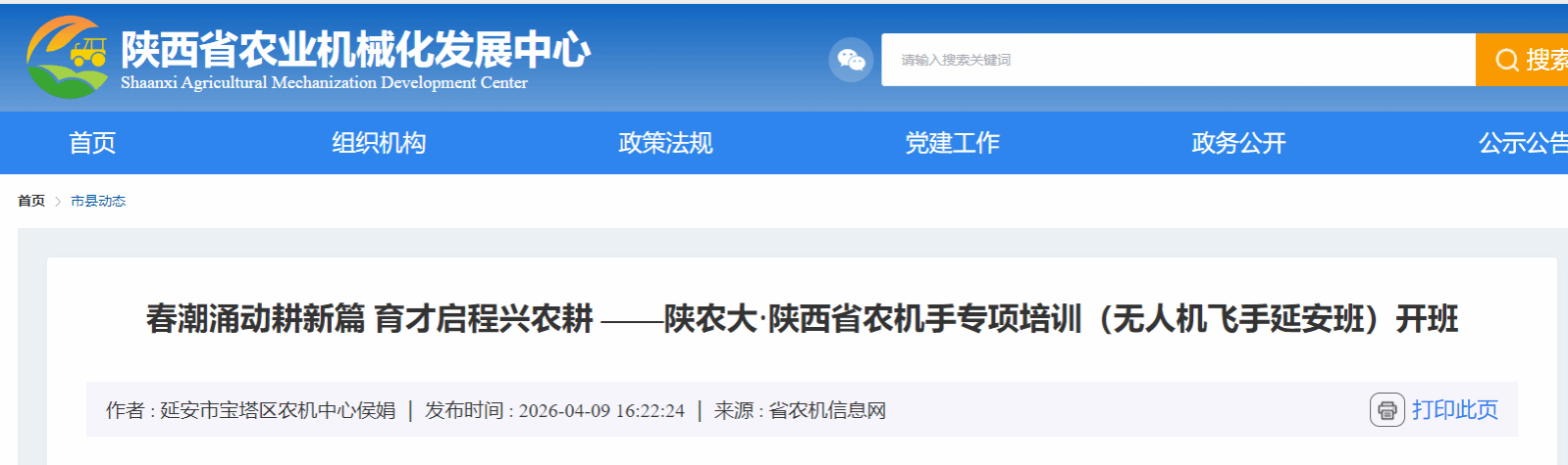 本次市级专项培训落地宝塔区,是推动区域农业智能化转型、助力春耕生产的重要举措,更是贴合延安农业发展需求、破解智能农机人才短板的具体实践。此次培训采用理论授课+模拟训练+田间实操+考核认证一体化模式,课程覆盖无人机飞行原理、安全法规、药剂配比、设备维保、故障排查及实战作业等内容,考核合格学员将获得专业认证、操作证书。区农机中心将全程做好服务保障与监督工作,全力配合完成各项教学任务,着力培育一批懂法规、会操作、能维保、善作业的专业飞手队伍,打通无人机推广应用“最后一公里”,让无人机真正成为春耕生产的“好帮手”,为粮食安全保障及乡村全面振兴注入强劲科技动能。
