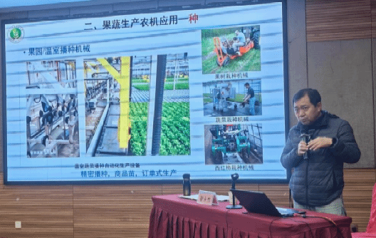 西北农林科技大学机械与电子工程学院崔永杰教授讲解《机械化在果蔬生产中的应用》,西北农林科技大学党革荣副教授讲解《国内外现代农业机械现状与未来发展趋势》,西北农林科技大学陈军教授讲解《智慧农业与智能农业机械新装备》,西北农林科技大学马克思主义学院院长杨鹏教授讲解《党建引领乡村治理实践探索》,西安誉翔外航服务有限公司的上官智刚《无人机进行模拟器操作训练和实操训练》,陕西直播产业研究院执行院长赵宁老师带来《AI应用赋能农技工作创新探索》,从AI生成产品文案、宣传图片、视频等实操角度,将AI技术的应用渗透到农技工作的全链条,从产前的品种选育、种植规划,到产中的精准管理、灾害防控,再到产后的品质分级、市场对接,有效破解了传统农技服务的痛点和难点。