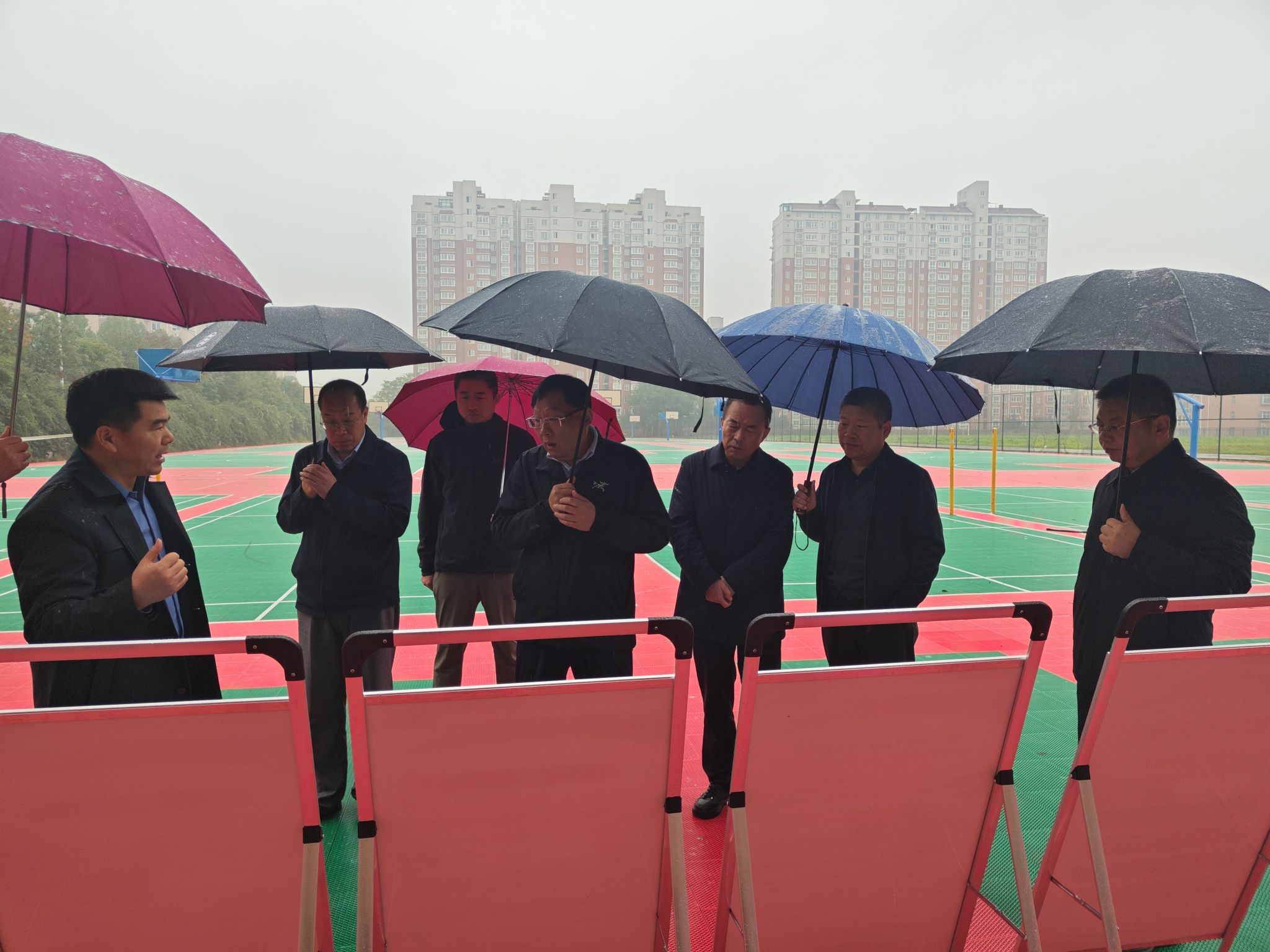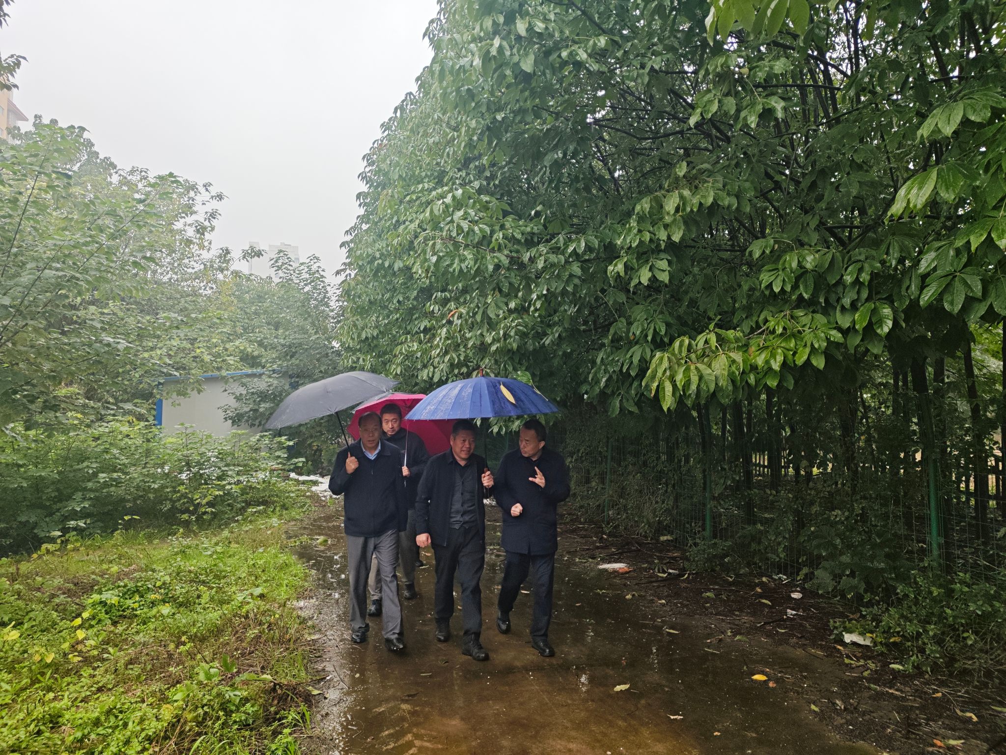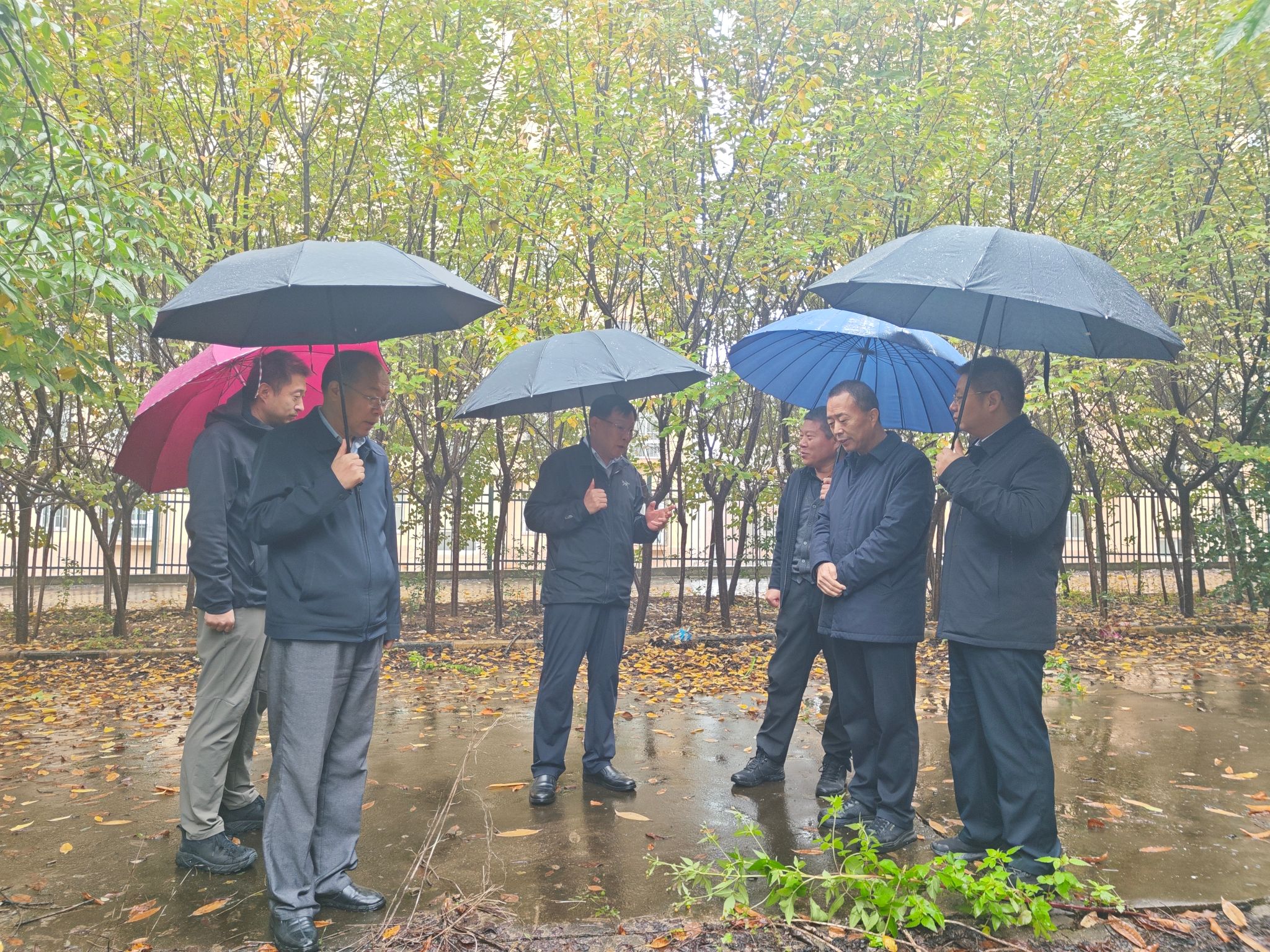 调研组一行冒雨深入我校西校区原校部农场实地踏勘,听取了我校-陕西省农机装备发展和人才实训基地建设规划汇报。任步学高度肯定了基地规划建设方案和发展规划,高度评价了学校在技能人才培育方面突出成效。他表示,通过调研倍感振奋,一是没想到学校农机基地建设的基础如此优越,二是没想到基地规划建设方案如此优异。他指出,农业农村现代化离不开农业装备的现代化,离不开农机装备发展和人才实训基地建设,离不开高素质的技术技能人才队伍。他希望厅校双方进一步深化对接,做好保障,全方位谋划和全口径预算,聚焦农机发展补短板和农机产业延链条,高水平、快节奏的推进基地建设。