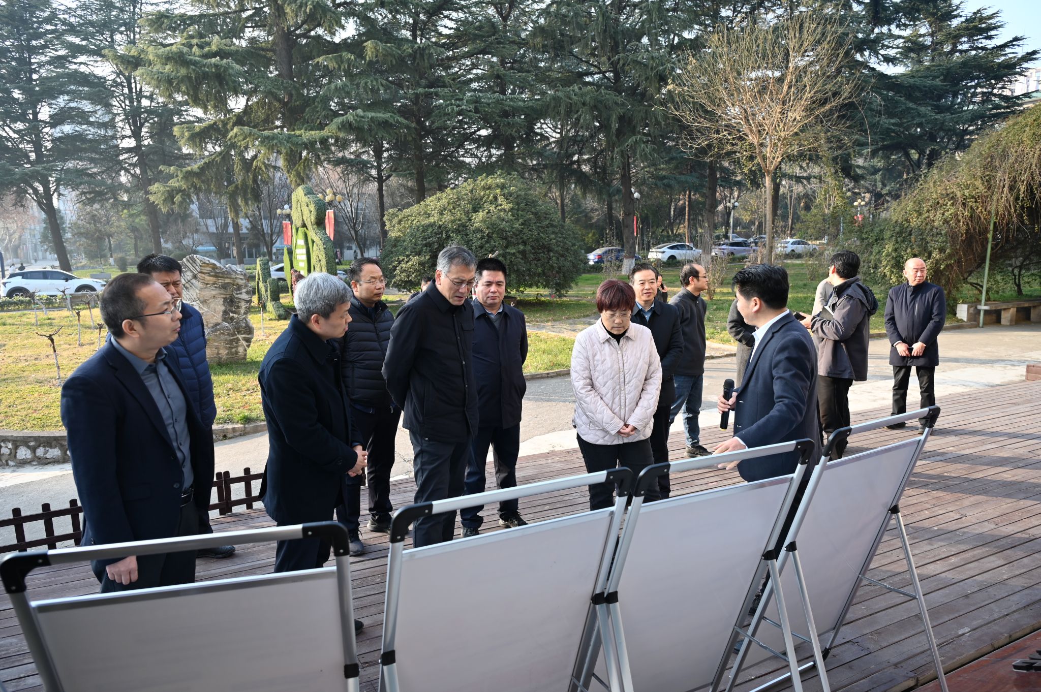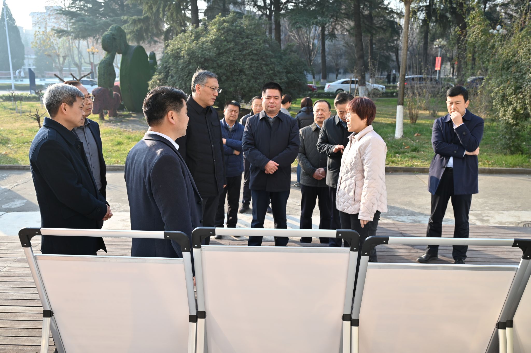 示范区党工委副秘书长李新龙、杨天锋、唐敏、李鑫,党工委外办主任马静、科创局局长薛海兵、人社局局长赫思远、农业局局长魏争谋、农科传媒集团董事长郑斌、创新创业园公司总经理米强以及学校党政办、继续教育与培训学院等相关部门负责人参加了调研活动。