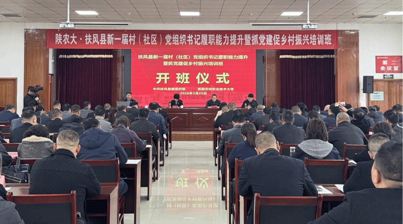 为深入贯彻落实抓党建促乡村振兴战略部署,建强基层党组织战斗堡垒,锻造一支懂农业、爱农村、爱农民的乡村振兴骨干队伍,3月25日,我校承办的扶风县新一届村(社区)党组织书记履职能力提升暨抓党建促乡村振兴培训班正式开班。扶风县各村(社区)党组织书记齐聚一起,开启为期3天的集中充电,通过理论学习、现场教学、研讨交流等多元形式,为全面推进乡村振兴、提升基层治理效能注入强劲动力。